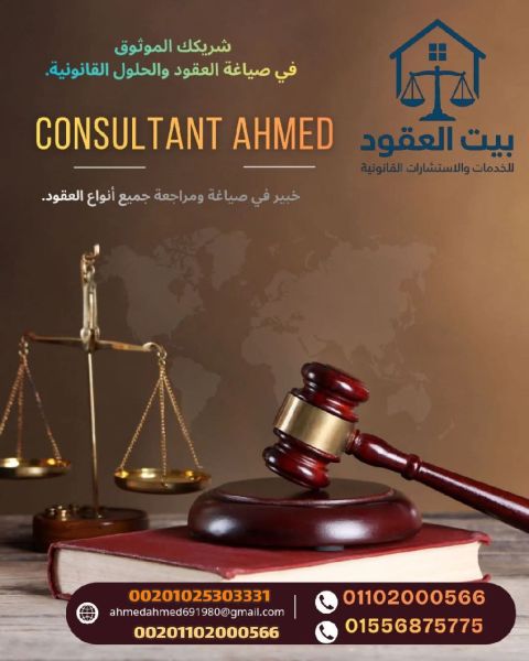 بيت العقود للخدمات والاستشارات القانونية نقدم خدماتنا القانونية باحترافية ودقة عالية في صياغة ومراجعة جميع أنواع العقود نختص بصياغة ومراجعة كافة أنواع العقود المدنية - التجارية - عقود الإيجار - عقود المصانع والشركات - العقارات - عقود المقاولين - أصحاب معارض السيارات - اتفاقات رجال الأعمال والمستثمرين. كما نقدم خدمات متكاملة في حل المنازعات وتسوية الخلافات