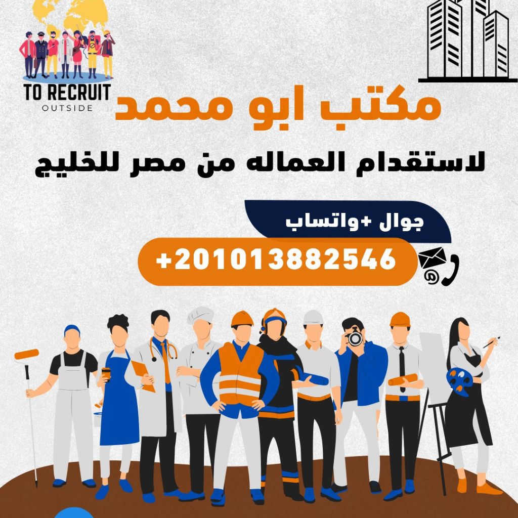استقدام - عمالة - من - مصر نحب أن نعرض علي سيادتكم التعاون المشترك بيننا في مجال استقدام العمالة من مصر ويشرفنا اذا منحتونا الفرصة لذلك نحن نورد لكم جميع العمالة من مصر للسعودية مهندسين - محاسبين - نجارين وعمال ومبيعات - مطاعم - حلاقة - سائقين حرفيين - سائقين - وصيادلة وجميع المهن المختلفة ومن جميع أنحاء مصر تقنية الفيديو في تصوير العمالة والفنيين في عملهم مقارنات علمية بينهم لاختيار أفضل العناصر المناسبة توريد العمالة