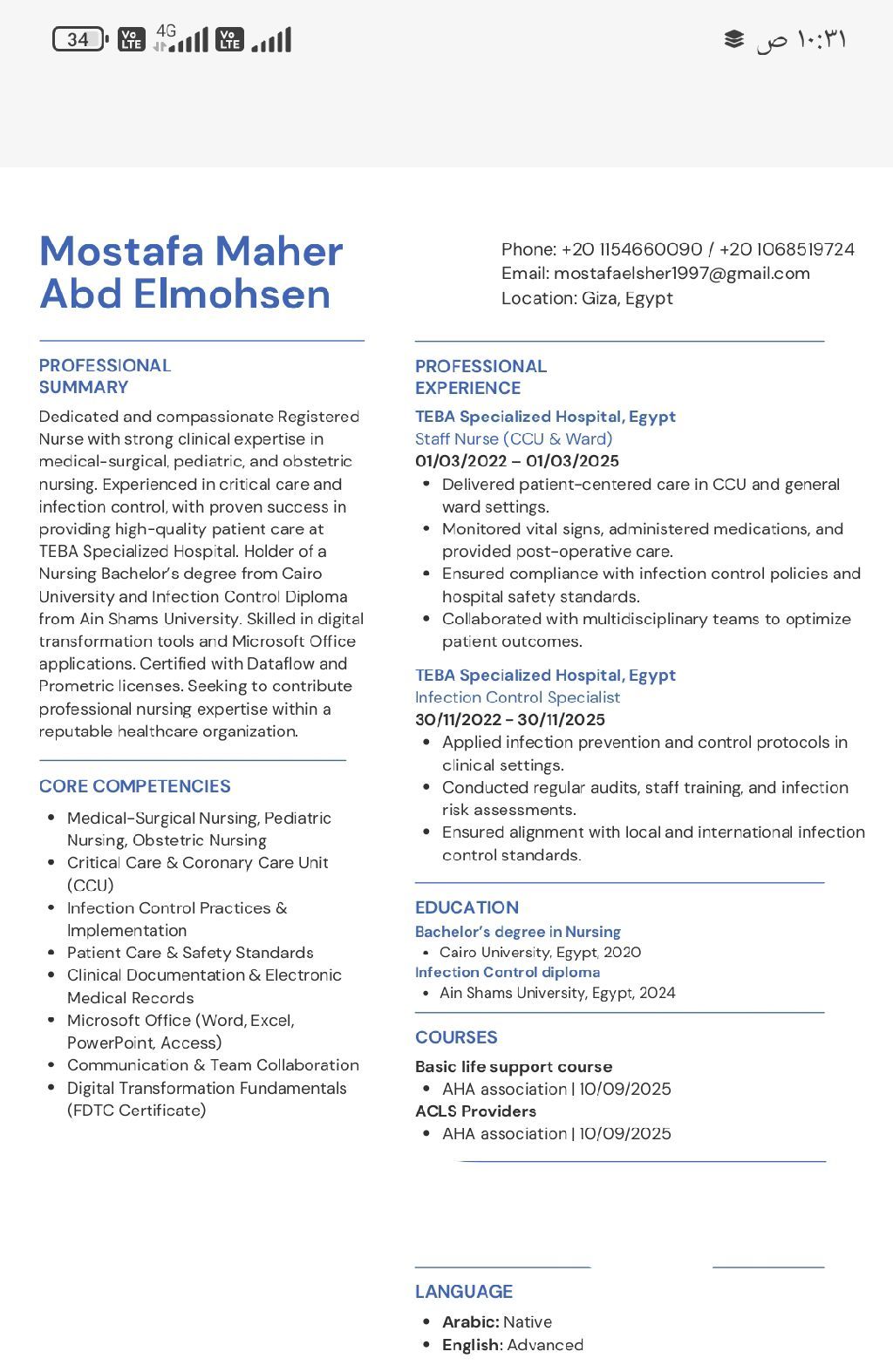 Licensed and classified nursing specialist in Saudi Arabia seeking a contract in Saudi Arabia