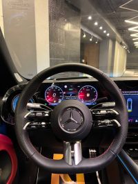 مرسيدس بنز CLA 200 موديل 2026 AMG (مجهزة بالكامل) 1500 سي سي توربو بقوة 190 حصان. المميزات تشمل: شاحن لاسلكي، كاميرا 360 درجة، سقف بانورامي، ثلاث شاشات، إضاءة محيطة، نظام صوتي في المقصورة، صندوق كهربائي، تكيف خلفي، مخارج شواحن. اللون: أسود مع فرش أحمر/أسود.