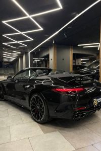 مرسيدس SL55 AMG موديل 2024، وكيل، لون أسود، فرش أسود، 4000 سي سي V8 BITURBO، 4-MATIC، 469 حصان، كاملة المواصفات، كراسي AMG، كهرباء ميموري مساج، تسخين وتبريد، نظام صوت محيطي، سقف بانورامي، كاميرا 360 درجة، رادار، شاشة عرض أمامية، دخول وخروج ذكي. السعر: 11,250,000