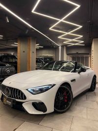 مرسيدس SL55 AMG موديل 2024، محرك سعة 4000 سي سي، V8 بيتوربو 4-ما تيك، قوة 469 حصان. مواصفات AMG كاملة. مقاعد كهربائية ذاكرة مع مساج وتسخين وتبريد. نظام صوت بورميستر، سقف بانورامي، كاميرا 360 درجة، رادار، شاشة عرض أمامية. لون أبيض من الخارج وجلد أسود من الداخل.