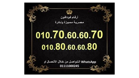 للبيع أرقام فودافون مصرية صعب تشوفها مرتين 010000000 للبيع أرقام جوال فودافون مصرية جميلة 010000000.44 - 010803030.80 010804040.80 - 010706060.70 010806060.80 الاستفسار والتواصل من خلال الاتصال أو