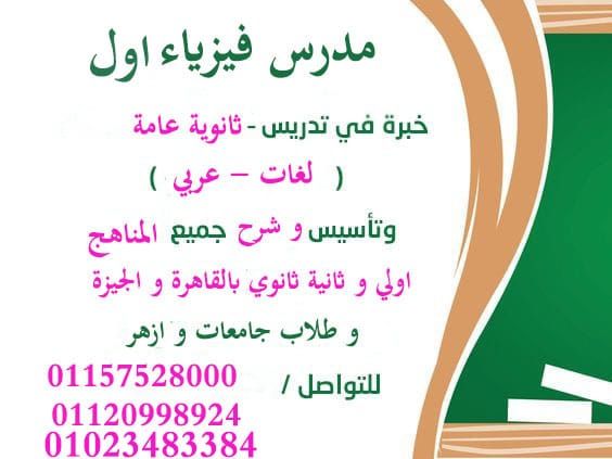 مدرس فيزياء متخصص 3 ثانوي وجامعات ومناهج بريطانيه وأمريكيه وخليجية أقوي شرح مبسط لكافة المناهج في الجيزة والقاهرة للنجاح والتفوق