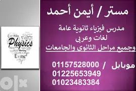 مدرس فيزياء ثالث ثانوي وجامعات ومعاهد ومناهج أمريكيه وبريطانيه وخليجية أقوي شرح متكامل حضوري وأون لاين لكافة المناهج