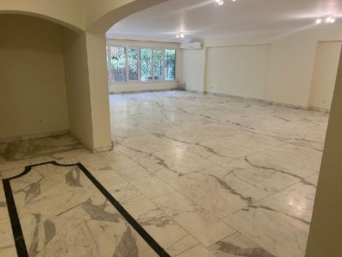 A registered apartment for sale in the prestigious Maadi area, specifically in the Sarayat district. It features 4 bedrooms, a large living room, 3 bathrooms, and a private garden. The apartment is on the ground floor, fully finished, and includes installed air conditioning