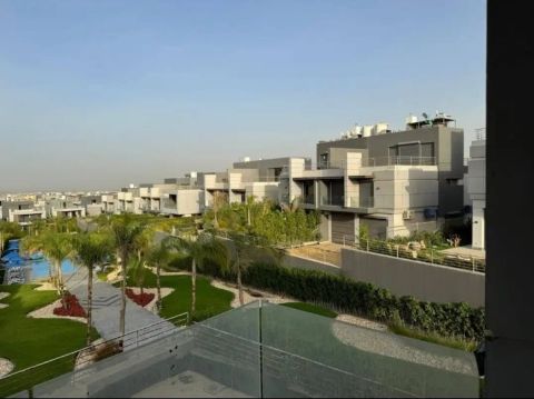 Quattro Villa in Patio Al Zahraa Zayed near Al Ahly Club, owned by La Vista Company, distinguished and uninjured location, immediate receipt without finishing, private garden, total area 234 SQM, building area 212 SQM, ground floor, reception, 3 pieces, kitchen and bathroom, first floor 3 bedrooms, one of which is master, small kitchen, bathroom, rooftop, nanny room, kitchen, rea