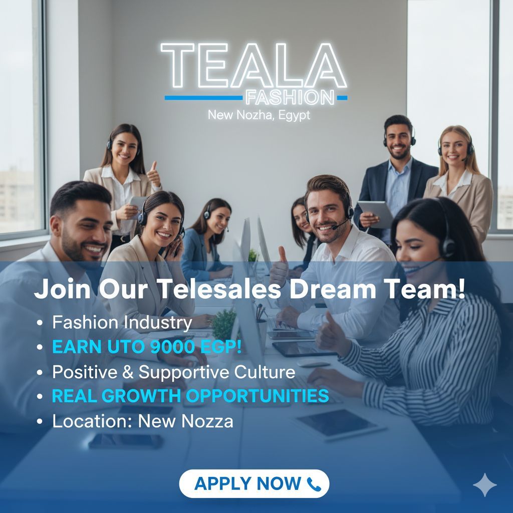 مطلوب تيلي سيلز شباب وبنات للعمل بشركة ملابس في القاهرة - النزهة الجديدة (جوزيف تيتو) راتب ثابت يصل الى 9000 + عمولة + حوافز مواعيد 9.30 ص 6م/ الجمعة إجازة يشترط مؤهل متوسط أو عالي ومهارات تواصل جيدة خبرة سنة على الأقل في السيلز أو خدمة العملاء أو الكول سنتر العنوان القاهرة - النزهة الجديدة (جوزيف تيتو) للتواصل