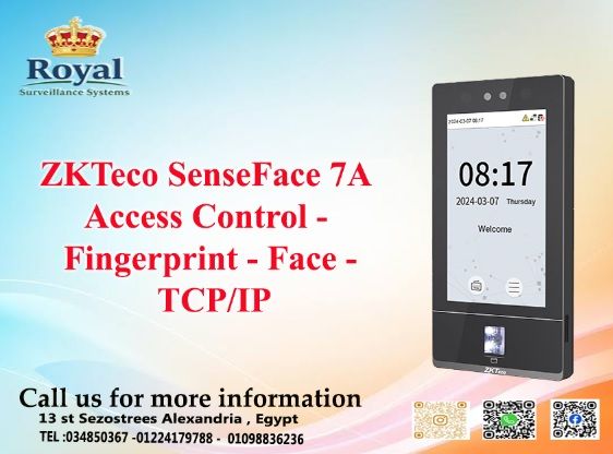 هل تبحث عن جهاز يجمع بين الأداء الاستثنائي، السعة التخزينية الهائلة، والمتانة الفائقة شركة رويال للحماية والانذار تقدم الحل الأمثل للمؤسسات الكبرى والبيئات الصعبة جهاز ZKTeco SENSEFace 7A الرائد. هذا الجهاز مصمم ليتجاوز التوقعات، حيث يوفر أعلى مستويات الدقة والأمان شاشة لمس LED ملونة شاشة TFT كبيرة وواضحة مقاس 7 بوصات تعمل باللمس لتجربة مستخدم سلسة وتفاعلية. سعة هائلة للتعرف على الوجوه يخزن حتى