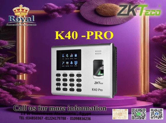 جهاز البصمة الذكي ZK - K40 PRO الحل المثالي لتنظيم حضور وانصراف الموظفين بسهولة ودقة وكفاءة عالية مواصفات الجهاز يسع حتى 3000 بصمة اصبع. يدعم حتى 3000 كارت ذكي. يسجل ما يصل الى 200000 حركة. مزود ببطارية داخلية للطوارئ تعمل أثناء انقطاع الكهرباء. خدماتنا تشمل توريد وتركيب احترافي بأعلى كفاءة. برمجة النظام وتدريب الموظفين على استخراج التقارير بسهولة. شحن يومي لجميع المحافظات - ضمان سرعة