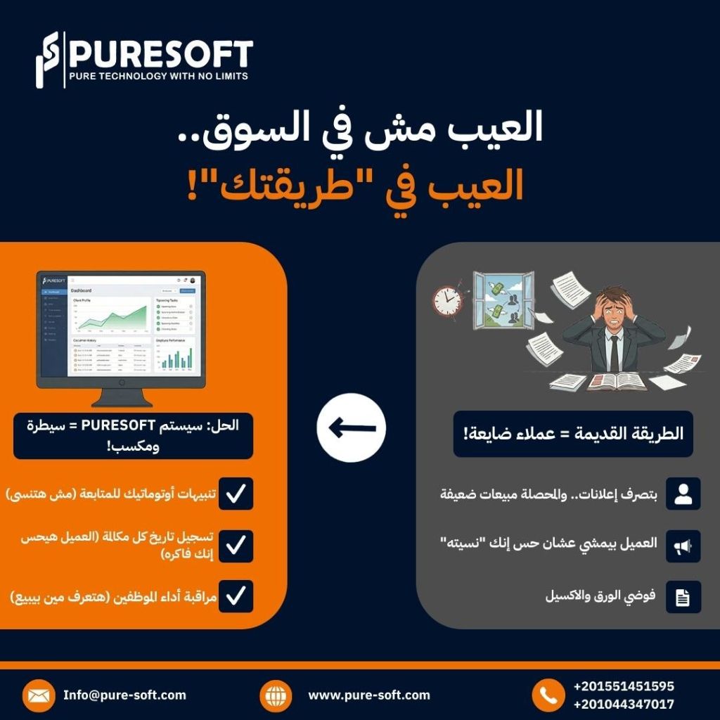 السيستم الذكي لإدارة الشركات - شريكك للنجاح وتطوير أعمالك هل تبحث عن نظام اداري يضمن لك الدقة والسرعة في العمل نقدم لكم أقوى نظام لإدارة موارد المؤسسات (ERP System) لانهاء زمن العمل اليدوي والأخطاء المتكررة. أهم المميزات تنظيم كامل للدورة المستندية. متابعة حركة المخازن والجرد بالمسة واحدة. اصدار فواتير احترافية وتقارير ضريبية. دعم فني وتدريب على استخدام السيستم. استثمر في نظام يريح بالك ويخليك تتفرغ