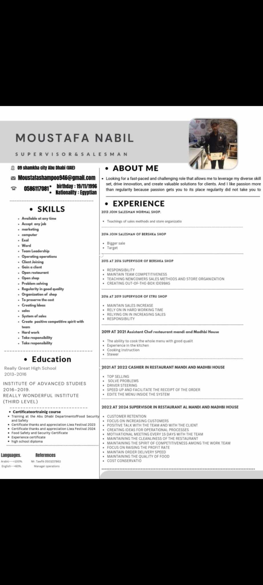 I am looking for Job in restaurant in Egypt or UAE or Saudi Arabia or qatr