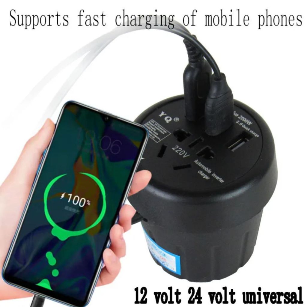 محول كهرباء للسيارة 150 واط - شكل كوب - محول كهرباء للسيارة 150 واط - شكل كوب خلي عربيتك دايما مصدر طاقة وأنت في الطريق يشتغل على 12V و24V 3 مخارج USB سريعة مخرج 220V AC اشحن اللابتوب، الموبايل، الكاميرا، أو أي جهاز ثاني وأنت في عربيتك تصميم عملي يدخل في حامل الاكواب أمان عالي ضد السخونة والتحميل الزايد الحل المثالي للسفر، الشغل، والرحلات يوجد خدمة توصيل واتساب / اتصل على