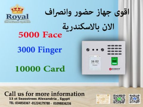 هل تبحث عن نظام قوي ومتعدد الوسائط لإدارة الحضور والتحكم في الدخول لمنشأتك تقدم لكم رويال لأنظمة المراقبة والانذار الحل الأمثل جهاز Convev CVL6000. هذا الجهاز مصمم لتلبية احتياجات الشركات والمؤسسات الكبيرة والمتوسطة التي تتطلب دقة عالية وسعة تخزين هائلة وميزات متقدمة. Convev CVL6000 القوة في الأرقام والتنوع يجمع جهاز CVL6000 بين تقنيات التعرف على الوجه، البصمة