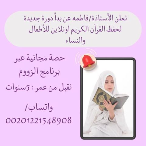 ابحث عن فرصة عمل تابعة للمراكز أو الأكاديميات التعليمة اونلاين خبرة 10 سنوات كمعلمة قرآن وحاصلة على إجازة برواية حفص عن عاصم، أو داخل محافظة بور سعيد، التواصل لمن يستطيع تقديم فرصة عمل جدية منعا للاحراج وممنوع التواصل
