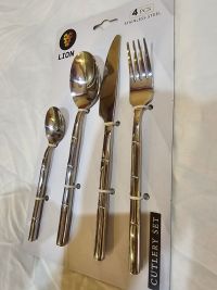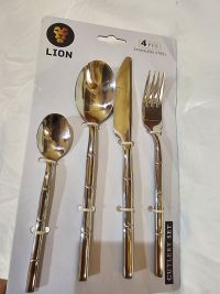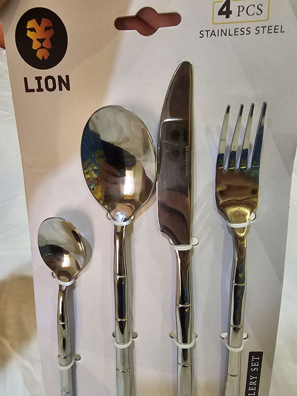 طقم مائدة ملاعق وشوك وسكاكين مكون من ملعقة كبيرة وآخري صغيرة وشوكة وسكينه أستيل مقاوم للصدأ خامة ثقيله ومتينه جدا ماركة ليون مستورد الكرتون الواحد فيه 12 طقم 4 قطع ب 48 قطعة يوجد 132 طقم ينفع للمطاعم والفنادق بسعر ممتاز للي بيشيل الكمية كلها