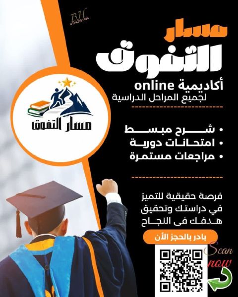 ابنك بطل مع "أكاديمية مسار التفوق" Online نحول المذاكرة من عبء الى متعة ونتائج حقيقية لجميع المراحل (ابتدائي، اعدادي، ثانوي) ليش تختارنا شرح مبسط يناسب كل المستويات. تقييم مستمر امتحانات دورية ومراجعات تثبت المعلومة. متابعة دقيقة لرفع المستوى الأكاديمي خطوة بخطوة. ثقة وتميز نبني طالبا واثقا ومستعدا للامتحانات. هدية الأكاديمية حصة تجريبية مجانا