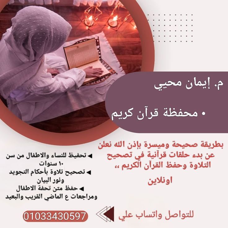 معلمة قرآن كريم وتجويد عملي ونظري اونلاين وعلوم شرعية للاطفال وشرح مناهج التربية الاسلامية، مع ألعاب تفاعلية وفيديوهات تعليمية حديثة وحفظ متن تحفة الاطفال، مراجعة علي الماضي والحاضر، اختبارات دورية، دورة نور بيان (فتوحات رب أنية) للنساء