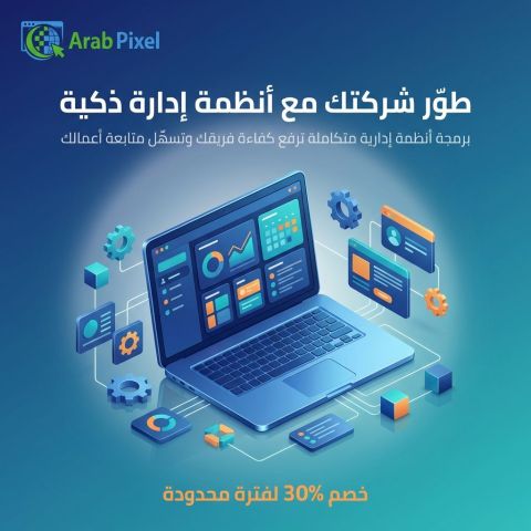 طور شركتك مع أنظمة إدارة ذكية من Arab - Pixel برمجة أنظمة ادارية متكاملة ترفع كفاءة فريقك وتسهل متابعة أعمالك. استفد من عرضنا الخاص خصم 30% لفترة محدودة. برمجة تطوير - البرمجيات أنظمة - ادارية إدارة - الأعمال تحول - رقمي حلول - برمجية تطوير - مواقع بزنس خصم عروض خاصة