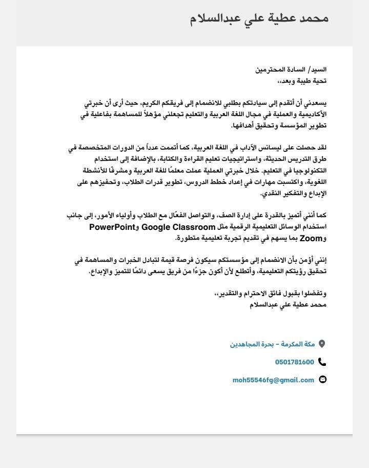 Experienced in teaching across various educational levels, with a strong ability to deliver information in a clear and simplified manner while developing students’ thinking and reading skills. Committed to implementing modern teaching strategies that emphasize interaction and participation, while focusing on instilling Islamic values and strengthening cultural identity. Proficient in teaching Arab