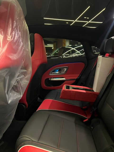 مرسيدس بنز CLA 200 موديل 2026 AMG (مجهزة بالكامل) 1500 سي سي توربو بقوة 190 حصان. المميزات تشمل: شاحن لاسلكي، كاميرا 360 درجة، سقف بانورامي، ثلاث شاشات، إضاءة محيطة، نظام صوتي في المقصورة، صندوق كهربائي، تكيف خلفي، مخارج شواحن. اللون: أسود مع فرش أحمر/أسود.