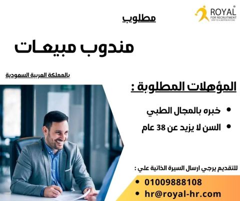 مطلوب للتعيين الآن (مندوب مبيعات) في المجال الطبي للعمل بكبرى شركات المتعاقدة مع كبرى شركات التوظيف بالمهندسين - المؤهلات المطلوبة خبرة بالمجال الطبي - السن لا يزيد عن 38 عام - الأساسيات المتوفره سكن - إقامة - تأمين طبي - انتقالات - للتقديم يرجى إرسال السيرة الذاتية مع كتابة "المسمي الوظيفي