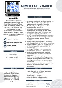ابحث عن عمل في مصر مدير تشغيل وحركة ودعم لوجستي سلاسل أمدادات ومستودعات خبرة أكثر من 15 سنوات بادارة المستودعات ومدير حركة وتشغيل داخل السعودية للمشاريع العمل على أكثر من 12 فرع داخل المملكة منهم العمل عليا ادارة 250 عامل وموظف بالمستودعات وفريق تركيبات وصيانة ادارة وتشغيل 30 فرقه تركيبات وصيانة تحديث وتطويف في أداء العمل مع الموظفين داخلال الشركات ابحث عن عمل داخل مصر