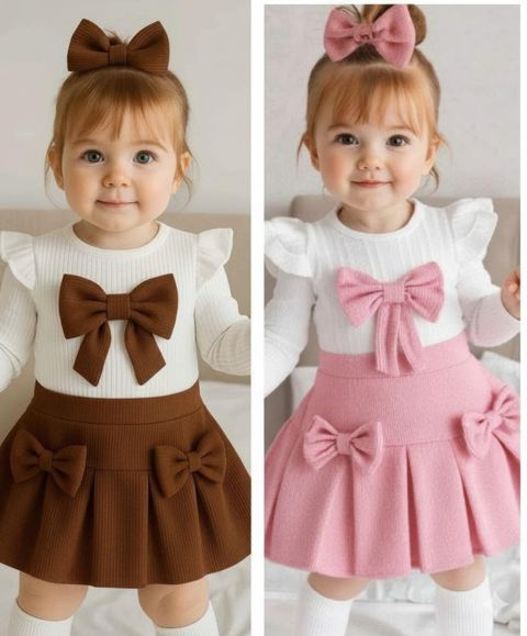 أشيك طقم "4 قطع" لأميرتك الصغيرة الطقم التراند وصل بالوأنه (البنك والبني) لزوم شياكة الشتا