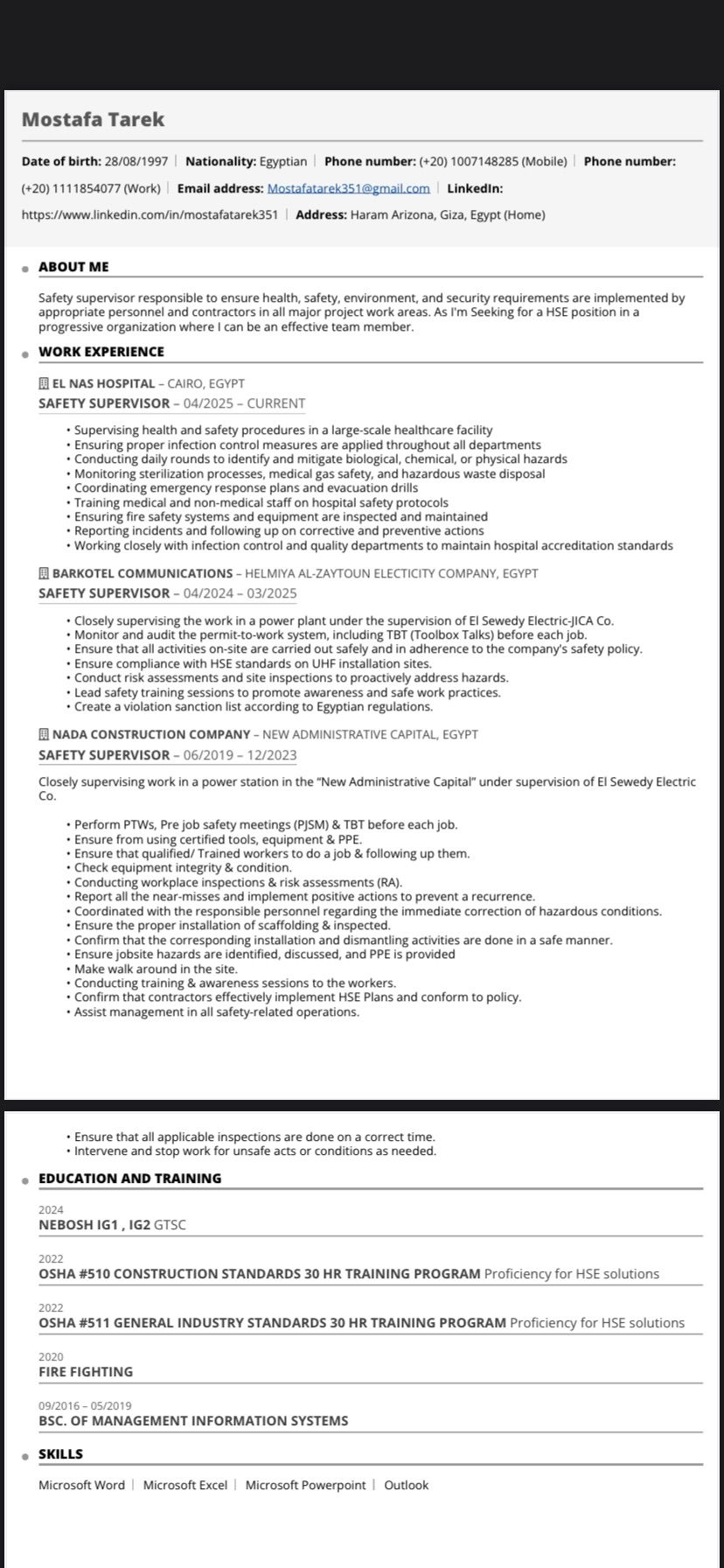 ابحث عن عمل مشرف سلامة وصحة مهنية خبرة 5 سنوات