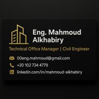 مع حضرتكم محمود الخبيري - مدير مكتب فني مهندس مدني لدي 7 سنوات خبرة في إدارة أعمال المكتب الفني بمشروعات أبراج استثمارية كبرى بميزانيات أكثر من 1.1 مليار جنيه لصالح جهات حكومية مثل وزارة الانتاج الحربي وهيئة الأوقاف. خبرة قوية في الرسومات التنفيذية، الحصر الهندسي، فروق الأسعار، والتنسيق الفني، اضافة الى تصميم أكثر من 50 مبنى مرخص وفق الأكواد الهندسية