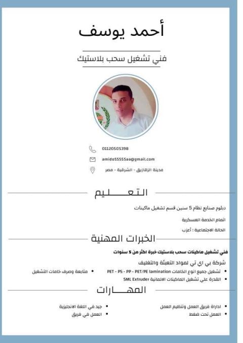 فني تشغيل سحب بلاستيك’ خبرة 8 سنوات في مجال بي أي تي لمواد التعبئة والتغليف