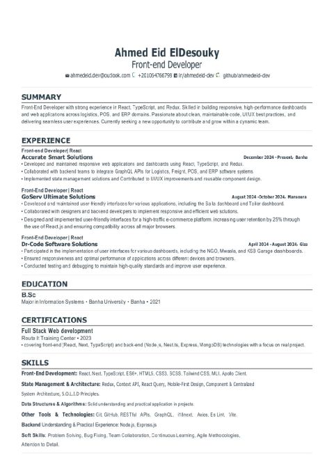 I am writing to express my interest in working as a backend developer. I recently graduated with a Bachelor's degree in Software Engineering from the Arab International University, and I have a great passion for building reliable, efficient, and scalable software solutions using. NET Core technologies. As a new graduate, I look forward to learning quickly, continuously developing my skills, and contributing