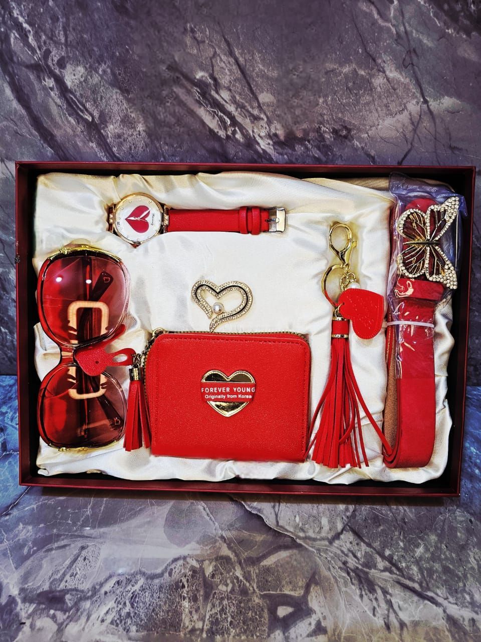 طقم هدايا فخم وأنيق لكل من تحب اذا كنت تبحثين عن الهدية المثالية تجمع بين الأناقة والرقي فهذا الطقم هو الخيار الأمثل يتكون من ساعة أنيقة نظارة عصرية محفظة جلد راقية ميدالية جميلة دبوس أنيق حزام أنثوي فاخر كل قطعة تنبض بالفخامة والأنوثة، وتأتي بتغليف فاخر يجعلها جاهزة لتقديمها كهدية مميزة في أي مناسبة لأن اللمسات الصغيرة تصنع الفرق الكبير السعر 11.99