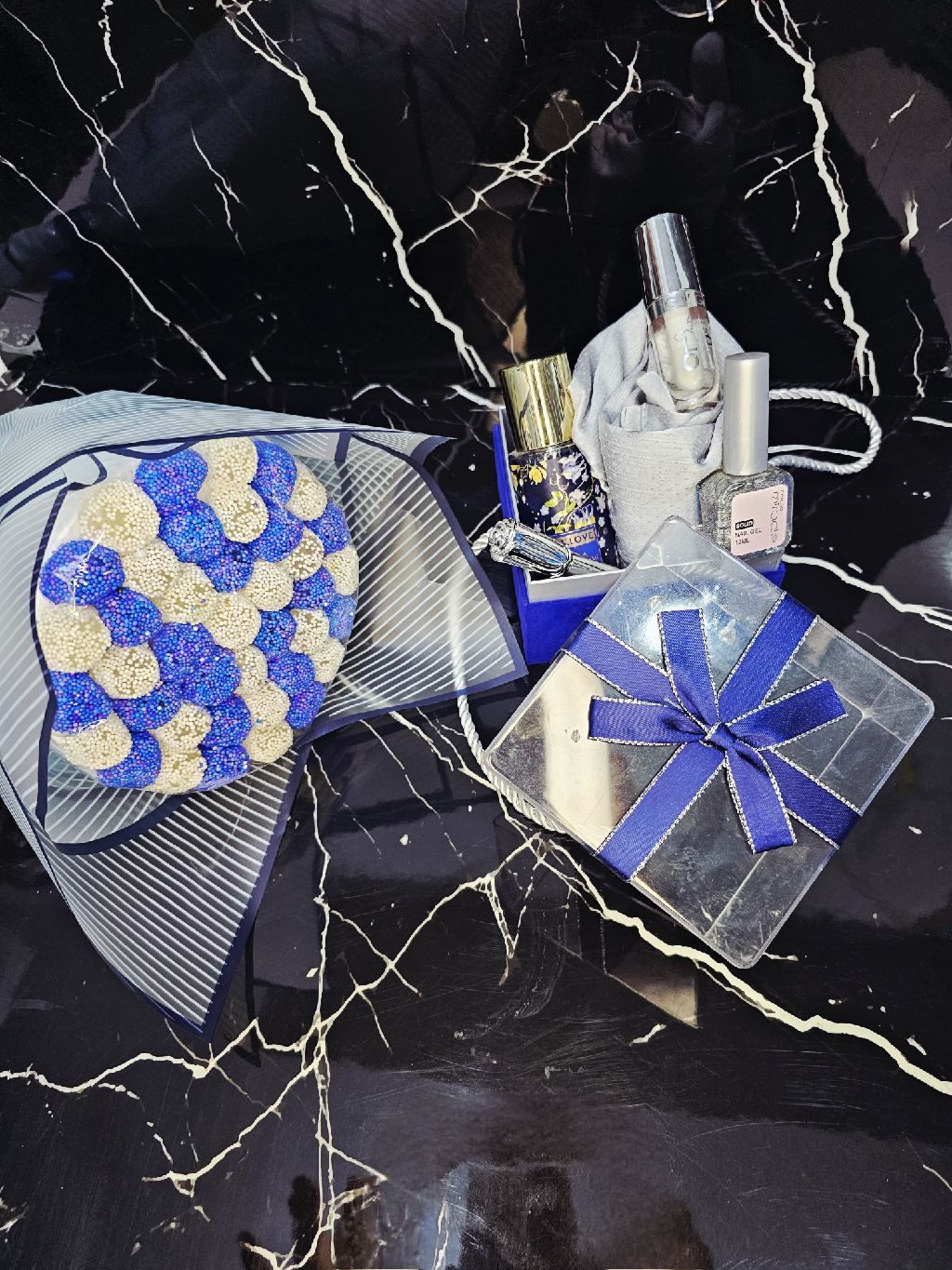 بكج لمسة الأنوثة الفاخرة لأن الجمال مش تفصيل واحد هو تناغم كل التفاصيل حضرنا لك بكج خرافي يجمع بين الأناقة، الجاذبية، والرائحة الحلوة اللي ما بتتنسى يتكون من شال شعر ناعم بتصميم أنثوي راقي منيكير في الوان عصرية تزيدك تألق جلوس شفايف يمنح لمعة ناعمة وساحرة عطر فاخر برائحة أنثوية تدوم وتلفت الانتباه مسك بنفحات ناعمة تزيد حضورك سحر هدية مجانية بوكيه كاندي لزيادة