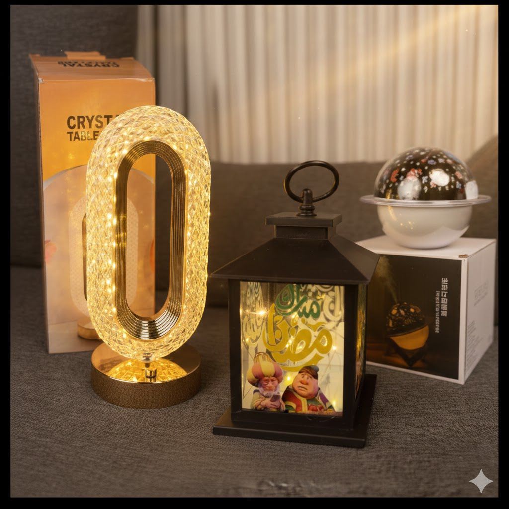 بكج السهرة الرمضاني يحتوي على فانوس رمضان فواحة الفضاء تيبل لامب السعر 11 دينار شامل التوصيل