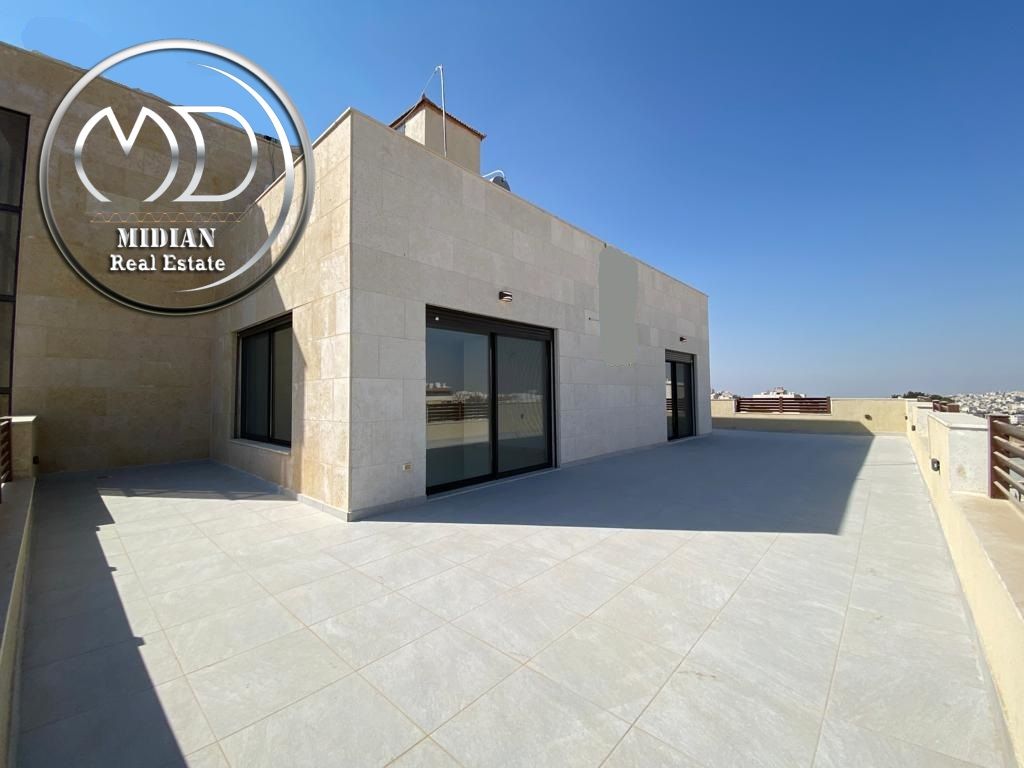 رقم الاعلان 9847 رووف طابقي جديد للبيع في أجمل مواقع خلدا مساحة 435م مع تراسات تشطيبات ديكورات عصرية فاخرة منطقة فلل باطلالة رائعة مكونة من صالون - معيشة - مطبخ - 4 نوم 2 ماستر - 4 حمام - رووف 220م - تراس - تدفئة غاز تحت البلاط. تأسيس مكيفات - غرفة خادمة - زجاج دبل كلاس - أباجورات كهرباء - حمامات معلقة شاور بوكس. أرضيات بورسلان وسيراميك - نظام صوتي Sound System في الصالونات والغرفة الرئيسية. أبواب