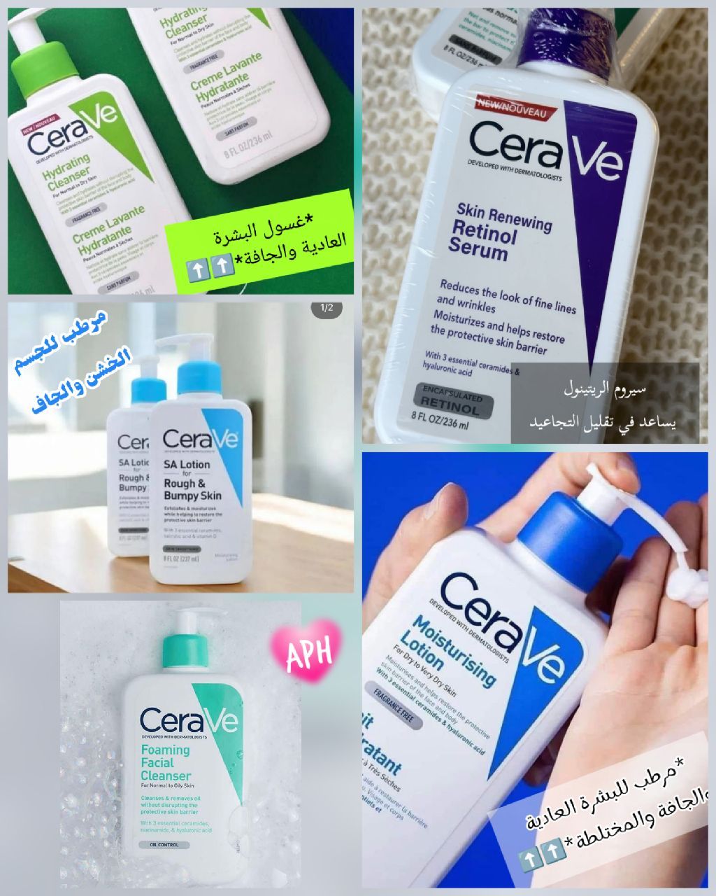غسول سيرا في كل غسولات سيرا في تحتوي على 3 أنواع من السيرا ميد والهيالورنيك أسيد لحماية حاجز البشرة والحفاظ على الرطوبة. لكن أكيد كل غسول فيه مكونات ثانية تستهدف نوع معين من البشرة ومشاكلها. متوفر غسول مناسب لكل مشكلة ولكل نوع بشرة السعر بعد العرض 8 دنانير للواحد و11 دينار للثلاث والتوصيل مجاني لجميع محافظات المملكة للطلب - والاستفسار - مراسلتنا - على - رسائل - الصفحة