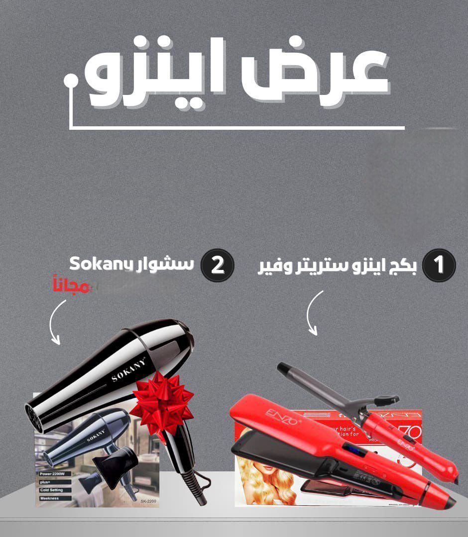 فلوسك خبيها وبعروضنا اكسبيها لانو عروضنا ما بتخلص مش جهاز ولا جهازين 3 اجهزة كهربائية وبسعر جهاز واحد بس هدية العرض سيشوار سوكاني الشهير سيشوار صالونات بحرارة 2200 واط وأكيد كلنا بنعرف ماركة انزو المميزة وفرنا لكم منها ستريت أينزو بحرارة فير انزو بحرارة كل هدول بسعر 22.99 بس بدل من 34.99 دينار وكمان التوصيل مجاني لكل محافظات المملكة للطلب - والاستفسار - مراسلتنا - على - رسائل