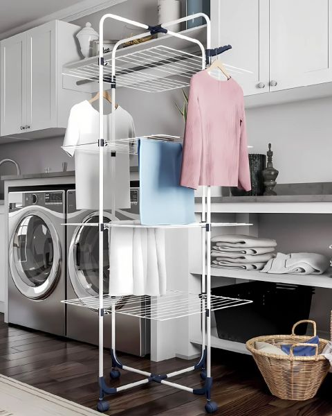 منشر تجفيف الملابس 4 طبقات تصميم قابل للطي عجلات لنقله من مكان لآخر بسهولة مصنوع من معدن متين ومطلي مقاوم للصدأ حمالات جانبية لعلاقات الملابس حجم عائلي السعر 18 دينار التوصيل مجاني لجميع محافظات المملكة للطلب - والاستفسار - التواصل - عبر - رسائل - الصفحة NY