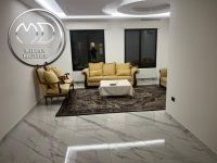رقم الاعلان 7307 شقة أرضية مفروشة للإيجار طريق المطار مساحة 180م مع تراس 70م تشطيبات ديكورات فندقية فرش فاخر بسعر مميز مكونة من صالون معيشة - مطبخ كامل الاجهزة الكهربائية - 3 نوم 2 ماستر 4 حمام مدخل مستقل كراج خاص. تراس وحديقة 70م - تدفئة غاز مكيفات زجاج دبل كلاس - أباجورات كهرباء - حمامات معلقة شاور بوكس أرضيات بورسلان كامل الشقة - انارة مخفية - سبوت لايت تشطيبات وديكورات فندقية
