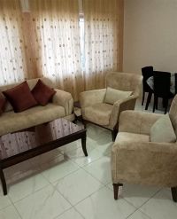 Furnished apartment for rent in Um Al - Summaq, next to Al - Durr Al - Manthour Schools. Two bedrooms, a living room, a kitchen, and a bathroom Very sunny throughout the day. Hot & cold inverter air conditioners. For contact