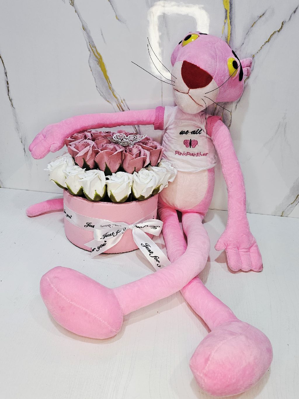 دمية Pink Panther ناعمة بوكس ورد وردي × أبيض بتنسيق مرتب وفاخر ربطة أنيقة بتكمل جمال الهدية هدية مثالية للمفاجآت، للأعياد، وللناس اللي بتحب الورد واللون الوردي خلي هديتك تحكي بد الك وتعطي ابتسامة من القلب السعر شامل التوصيل 15.99 JD احجز الآن قبل نفاد الكمية للطلب