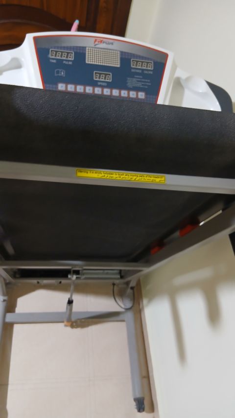 جهاز ركض تردميل نوع Fitplus استعمال قليل بحالة الوكالة محرك بقوة 2 حصان سرعات متعددة لغاية 12 كم/ ساعة شاشة تعرض مقاييس التمرين الأساسية مثل السرعة والوقت والمسافة والسعرات الحرارية المحروقة قابل للطي للتخزين ومعه علبة زيت السعر 120 دينار عمان طريق المطار
