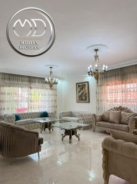 رقم الاعلان 7296 شبه فيلا دوبلكس مفروشة للإيجار الصويفية مساحة 300م مع تراسات وحدائق تصلح للأجانب والهيئات الدبلوماسية مكونة من صالون - معيشة - مطبخ كامل الاجهزة الكهربائية - 3 نوم 1 ماستر - 5 حمام - مدخل مستقل - كراج خاص. تراس وحديقة 200م - تدفئة - مكيفات - غرفة خادمة مع حمام - غرفة غسيل - حمامات معلقة شاور بوكس. زجاج دبل كلاس - أباجورات كهرباء - أرضيات رخام وباركيه - انارة مخفية - تشطيبات