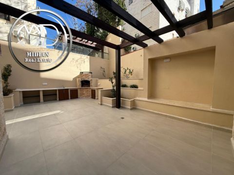 رقم الاعلان 8551 شقة دوبلكس أرضية فارغة للإيجار الصويفية مساحة 300م مع تراس وحديقة 250م تشطيبات سوبر ديلوكس مكونة من صالون - معيشة - مطبخ - 3 نوم 1 ماستر - 5 حمام - تراس وحديقة 250م - مدخل مستقل - كراج خاص. غرفة خادمة مع حمام - غرفة غسيل - تدفئة - زجاج دبل كلاس - أباجورات كهرباء - حمامات معلقة. شاور بوكس - أرضيات رخام وسيراميك - انارة مخفية - سبوت لايت - خزائن حائط - أبواب أمان - مصعد. تشطيبات