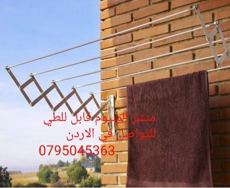 منشر غسيل من الألومينيوم قابل للطي الوصف منشر غسيل ألومينيوم مواسير ألومينيوم بطول 80 سم للما سورة الواحدة عدد المواسير خمسة قابل للطي والتمدد لسهولة استخدام جميع المواسير يمكن طية لتوفير المساحة، بعد الاستخدام للتواصل في الأردن