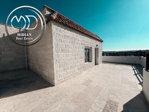 رقم الاعلان 9720 شقة دوبلكس جديدة طابق أخير مع رووف للبيع الرابية مساحة 320م مع تراسات تشطيبات وديكورات فاخرة اطلالة جميلة. مكونة من صالون - معيشة مطبخ - 4 نوم 4 ماستر - 6 حمام - رووف 240م - تراس برندات غرفة خادمة. دوبلكس - تدفئة غاز تحت البلاط - زجاج دبل كلاس أباجورات كهرباء - حمامات معلقة شاور بوكس. تأسيس مكيفات - أرضيات بورسلان وسيراميك - انارة مخفية - سبوت لايت - أبواب أمان - كراج