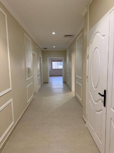 For rent: New ground floor apartment in Abu Fatira with a private entrance, super deluxe finishing, first occupant. 5 master bedrooms, 7 bathrooms, maid's room, laundry room, large living room, spacious areas, large equipped kitchen. Rent: 1100 KWD.