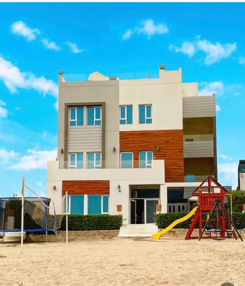 للراغبين في السكن والاستثمار، شاليه للبيع في صباح الأحمد المرحلة الثالثة، صف أول على البحر مع ارتداد خلفي كبير وبدون شاليهات خلفه. تشطيب المالك سوبر ديلوكس، يتكون من ثلاثة أدوار ونصف ومصعد وحمام سباحة بتشطيب راقي. البيع يشمل الأثاث. وثيقة حرة. جاري اصدار الأوصاف للجادين. تواصل