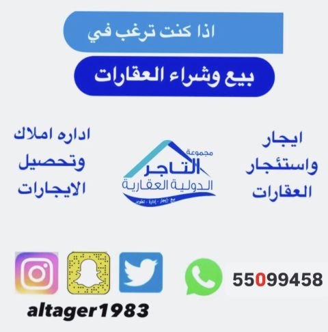For rent: A duplex apartment on the first and second floors in Al Aqila, consisting of 3 master bedrooms, a living room, a fully equipped kitchen, a maid's room, a fully equipped kitchen, and 4 bathrooms. The apartment is fully renovated with everything new, 2 shaded parking spaces, and close to services. Rent is 430 dinars. For contact.